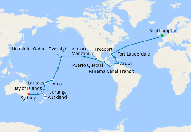 Southampton to Sydney, Cunard, 11th January 2024 โ PlaCruise
